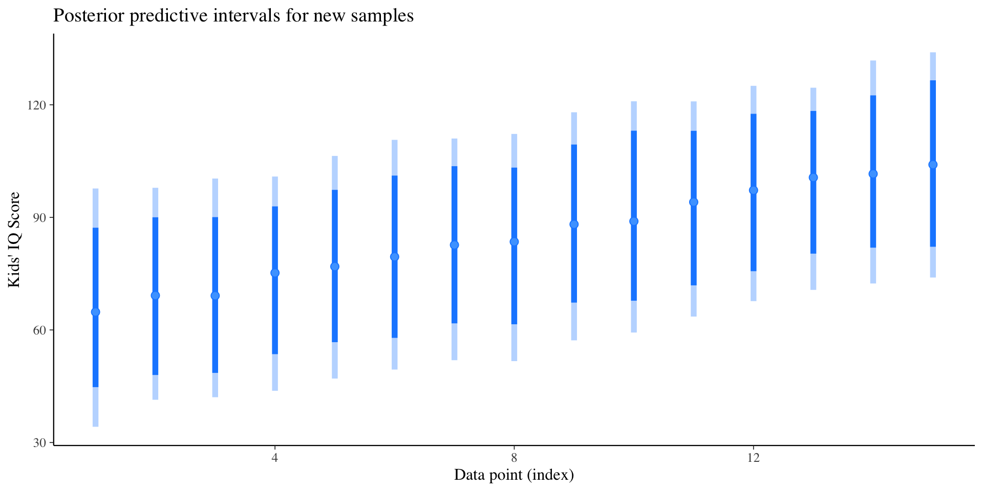 kid_score: Child’s IQ scoremom_hs: Indicator for whether the mother has a high school degreemom_iq: Mother’s IQ scoremom_age: Mother’s agestan_glm