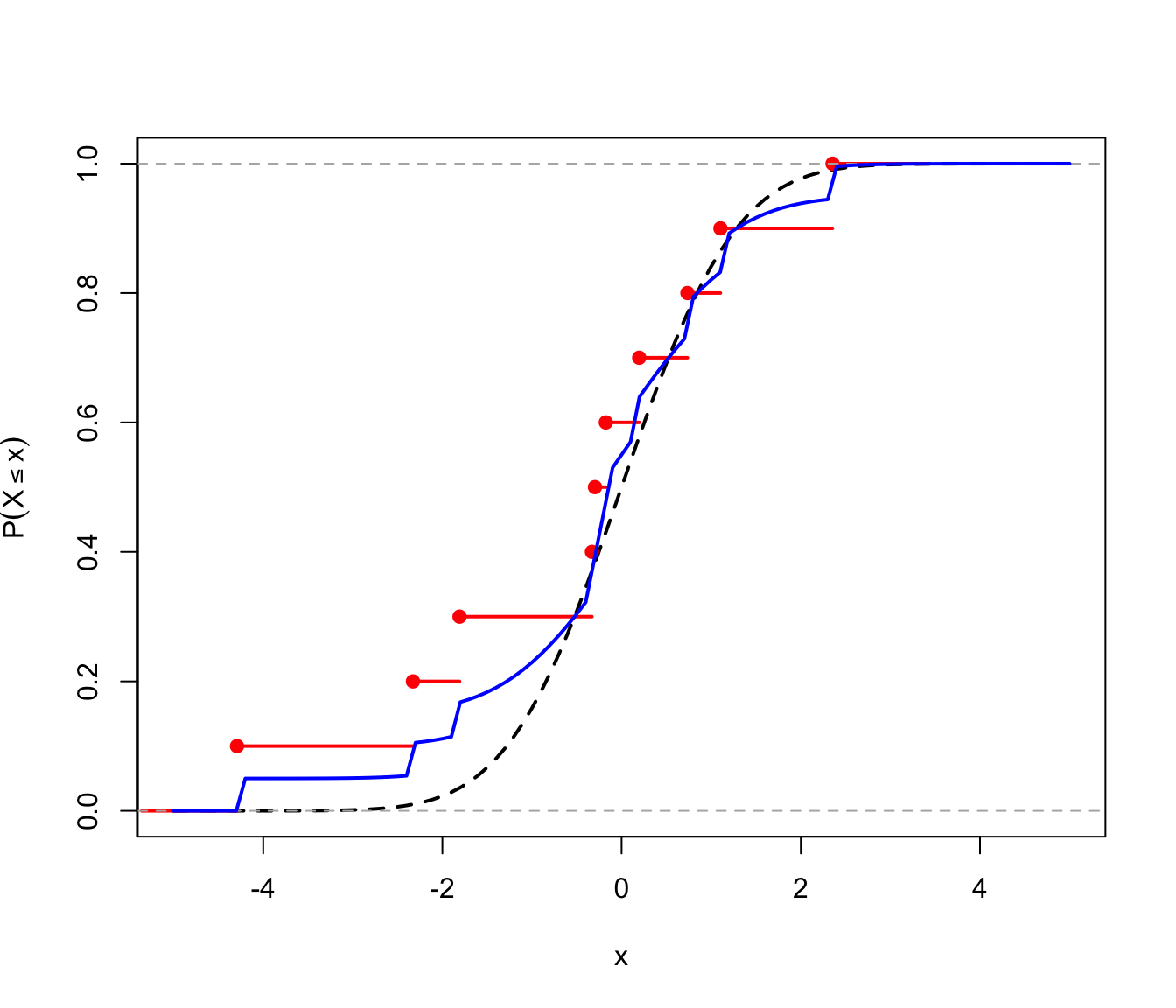 Based on the observations \(X_1, \ldots, X_n\), the empirical cdf (ecdf) is \[